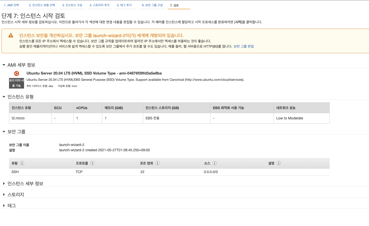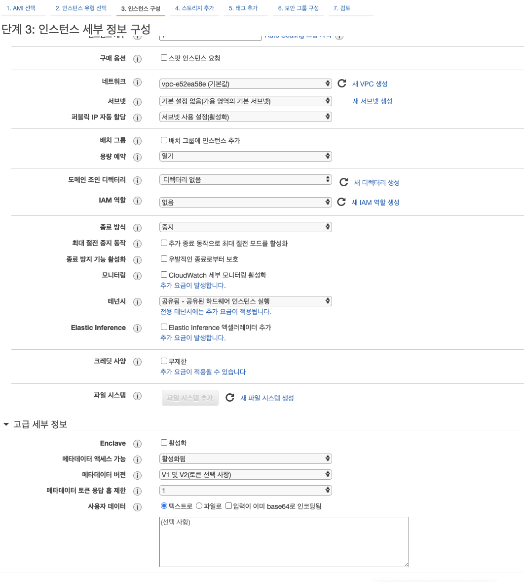 검토 및 시작을 누르면 아래와 같이 해당 페이지로 와지는데 여기서 3번인 인스턴스 구성에 가보자 !
