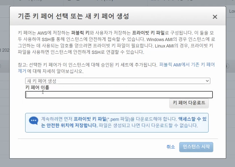 여기서 키 페어는 꼭 파일을 잘 갖고 있어야 한다 !