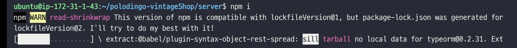자 다시 본론으로 돌아와서 back단 nodejs 설치가 모두 끝났으면 ! back 폴더의 npm i 를 실행해서 설치해주자 !