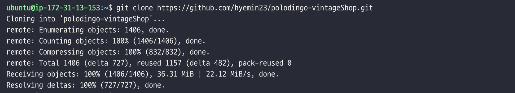 그 우분트 명령창에서 git clone "프로젝트 경로" 를 입력하게 되면, 우분투상에서 내 repository가 다운이 받아진다.