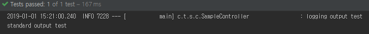 다음 테스트 코드는 로깅 메세지 및 표준 출력을 테스트하도록 수정합니다.
